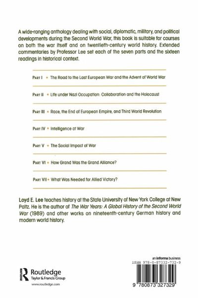 This anthology contains 16 readings by English-language scholars that deal with military, political, diplomatic, and social aspects of World War II and its consequences for the contemporary world. The readings are grouped around seven major topics and each topic is prefaced with a substantial commentary by Professor Lee that places it in historical context. The readings consist of complete articles or integral chapters rather than abridged selections so that each author's argument can be read in its original form. The authors are: Gerhard L. Weinberg, Akira Ireye, Jan Thomasz Gross, Betram M. Gordon, Michael R. Marrus, Hugh Tinker, Roy Fraser Holland, Lloyd E. Eastman, Roberta Wohlstetter, Williamson Murray, Sheila Fitzpatrick, D'Ann Campbell, Robert M. Hathaway, Melvyn P. Leffler, A.J. Levine, and Lawrence Freedman.
