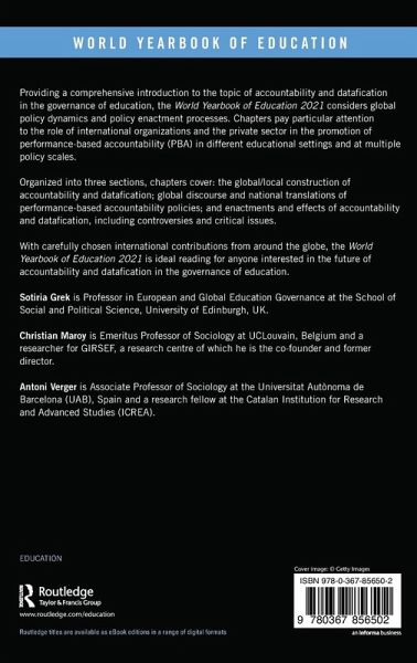 Providing a comprehensive introduction to the topic of accountability and datafication in the governance of education, the World Yearbook of Education 2021 considers global policy dynamics and policy enactment processes. Chapters pay particular attention to the role of international organizations and the private sector in the promotion of performance-based accountability (PBA) in different educational settings and at multiple policy scales. Organized into three sections, chapters cover: the global/local construction of accountability and datafication; global discourse and national translations of performance-based accountability policies; and enactments and effects of accountability and datafication, including controversies and critical issues. With carefully chosen international contributions from around the globe, the World Yearbook of Education 2021 is ideal reading for anyone interested in the future of accountability and datafication in the governance of education.