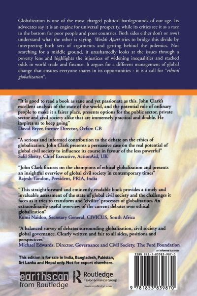 Globalization is one of the most politically charged issues of our time. This book aims to bridge the divide between its advocates and its critics, but, rather than trying to find middle ground, the author looks at globalization through the lens of poor people and poor countries, arguing for a different management of global changes that ensures everyone a share in its opportunities. His is a call for ethical globalization. An influential and globalizing civil society has a great opportunity to be a critical player - but this could be a brief window. Its advocacy largely pillories deficiencies in the system instead of promoting viable alternatives. The author seeks to change this by applying his experience from both sides of the ideological divide - working with NGOs, governments and the World Bank - to analyse the system's faults and suggest a fresh framework for transforming global relations and redressing injustices.