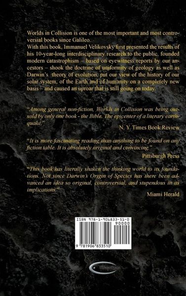With this book Immanuel Velikovsky first presented the revolutionary results of his 10-year-long interdisciplinary research to the public, founded modern catastrophism - based on eyewitness reports by our ancestors - shook the doctrine of uniformity of geology as well as Darwin's theory of evolution, put our view of the history of our solar system, of the Earth and of humanity on a completely new basis - and caused an uproar that is still going on today. Worlds in Collision - written in a brilliant, easily understandable and entertaining style and full to the brim with precise information - can be considered one of the most important and most challenging books in the history of science. Not without reason was this book found open on Einstein's desk after his death. For all those who have ever wondered about the evolution of the earth, the history of mankind, traditions, religions, mythology or just the world as it is today, Worlds in Collision is an absolute MUST-READ!