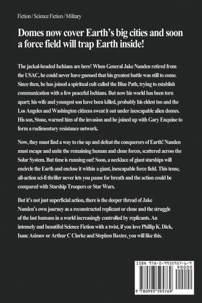 Domes now cover Earth's big cities and soon a force field will trap Earth inside! The jackal-headed Ischians are here! When General Jake Nanden retired from the USAC, he could never have guessed that his greatest battle was still to come. Since then, he has joined a spiritual cult called the Blue Path, trying to establish communication with a few peaceful Ischians. But now his world has been torn apart; his wife and youngest son have been killed, probably his eldest too and the Los Angeles and Washington citizens sweat it out under inescapable alien domes. His son, Stone, warned him of the invasion and he joined up with Gary Enquine to form a rudimentary resistance network. Now, they must find a way to rise up and defeat the conquerors of Earth! Nanden must escape and unite the remaining human and clone forces, scattered across the Solar System. But time is running out! Soon, a necklace of giant starships will encircle the Earth and enclose it within a giant, inescapable force field. This tense, all-action sci-fi thriller never lets you pause for breath and the action could be compared with Starship Troopers or Star Wars. But it's not just superficial action, there is the deeper thread of Jake Nanden's own journey as a reconstructed replicant or clone and the struggle of the last humans in a world increasingly controlled by replicants. Intensely and beautiful Science Fiction with a twist, if you love Phillip K. Dick, Isaac Asimov or Arthur C Clarke and Stephen Baxter, you will like this. Categories: fiction, science fiction, alien, thriller, first contact, clones, starship, genes, invasion.