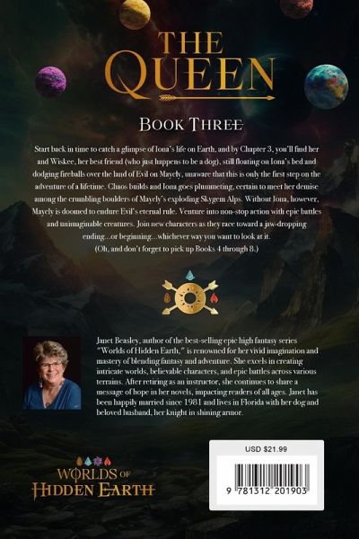 Get ready to have your daunting questions answered that were sparked from Books 1 and 2! Book 3 starts you back in time so that you can catch a glimplse of Iona growing up on earth. Then jump forward to the magical happening that is unknown to Iona, taking place on Maycly only 8 weeks before she is summoned with the eviction notice on earth. Then by Chapter 3 you'll catch up to real time where Iona and Wiskee (Iona's best friend and companion dog), are still floating on their enchanted bed over the land of Evil on Maycly, dodging fireballs. Little do they know this is the true beginning of their adventure of a life time! Chaos builds, and Wiskee witnesses his "momma," Iona, falling among the massive crumbling boulders of the exploding Skygem Alps to meet her demise. Without Iona, Maycly will be ruined. . .forever ruled by Evil. Readers will venture into non-stop action and more epic battle scenes with new creatures, and race through twists and turns that eventually lead to a jaw-dropping ending. . .or beginning however you want to look at it.