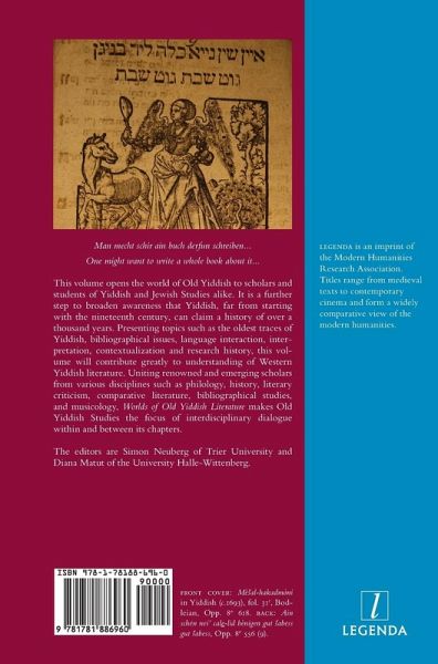 This volume opens the world of Old Yiddish to scholars and students of Yiddish and Jewish Studies alike. It is a further step to broaden awareness that Yiddish, far from starting with the nineteenth century, can claim a history of over a thousand years. Presenting topics such as the oldest traces of Yiddish, bibliographical issues, language interaction, interpretation, contextualization and research history, this volume will contribute greatly to understanding of Western Yiddish literature. Uniting renowned and emerging scholars from various disciplines such as philology, history, literary criticism, comparative literature, bibliographical studies, and musicology, Worlds of Old Yiddish Literature makes Old Yiddish Studies the focus of interdisciplinary dialogue within and between its chapters. The editors are Simon Neuberg of Trier University and Diana Matut of the University Halle-Wittenberg.