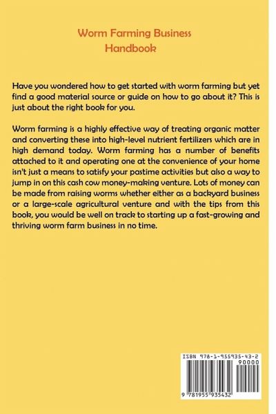 Turn Dirt Into Dollars - Launch Your Own Profitable Worm Farming Business Imagine building a low-cost, high-impact business... using nothing but worms, bins, and organic waste. Sounds crazy? Not when you understand the profit power of vermiculture. Whether you're a gardeners or homesteader looking to monetize your skills, or someone tired of the 9-5 grind, this book is your step-by-step guide to starting a sustainable worm farming business from scratch - no guesswork, no big budget, just real results. In this book, I carefully explain worm farming and the business aspect in the simplest terms possible with the necessary tips and secrets to help your worm farm to thrive as a worm farmer. The Worm Farming Business Handbook gives a detailed and informative guide on: The importance of worm farming Types of worms for worm farming, their attributes, and which is most widely used Planning your worm farm vis-à-vis getting your worm, setting up your worm bin, feeding your worms, troubleshooting worm bin issues, maintaining your worm bin, etc. Methods of harvesting worm compost Worm farming FAQs Transforming your worm farming hobby into a profit-making venture And so much more! Why This Book? Because it doesn't just teach you how to raise worms - it teaches you how to turn them into a business. You'll learn the what, the why, and most importantly... the how. It's not a textbook. It's a business launchpad. So, what more are you waiting for? Ready to get started? Then simply get a copy of this book RIGHT NOW