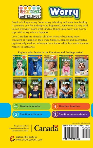 People of all ages worry. Some worry is healthy and some is unhealthy. It can make you feel unhappy and frightened. Sometimes it's very hard to stop worrying. Learn what kinds of things cause worry and how to cope with worry when it happens. Level 2 readers are aimed at children who are becoming more confident at reading on their own. Simple sentences and informative captions help readers understand new ideas, while key words increase readers' vocabularies. This project has been made possible in part by the Government of Canada.