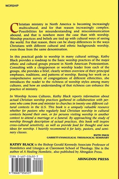 "In Worship Across Cultures, Kathy Black reports information about actual Christian worship practices gathered in collaboration with persons who come from and minister with churches in twenty-one different cultural contexts in the US. This book is a uniquely valuable resource whether for pastors who regularly lead Christian worship in cultural contexts beyond their own, or for persons visiting worship in another context to attend a marriage or a funeral. By approaching the study of worship through description of actual practices, it will inspire cross-cultural sensitivity, as well as providing food for thought and new ideas for worship. I heartily recommend it for laity, pastors, and seminary classes."