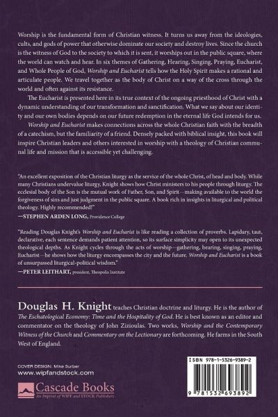 Worship is the fundamental form of Christian witness. It turns us away from the ideologies, cults, and gods of power that otherwise dominate our society and destroy lives. Since the church is the witness of God to the society to which it is sent, it worships out in the public square, where the world can watch and hear. In six themes of Gathering, Hearing, Singing, Praying, Eucharist, and Whole People of God, Worship and Eucharist tells how the Holy Spirit makes a rational and articulate people. We travel together as the body of Christ on a way of the cross through the world and often against its resistance. The Eucharist is presented here in its true context of the ongoing priesthood of Christ with a dynamic understanding of our transformation and sanctification. What we say about our identity and our own bodies depends on our future redemption in the eternal life God intends for us. Worship and Eucharist makes connections across the whole Christian faith with the breadth of a catechism, but the familiarity of a friend. Densely packed with biblical insight, this book will inspire Christian leaders and others interested in worship with a theology of Christian communal life and mission that is accessible yet challenging.