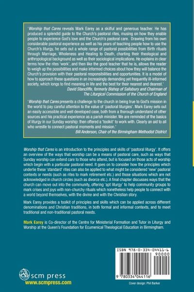 Worship that Cares is in introduction to the principles and skills of 'pastoral liturgy'. It offers an overview of the ways that worship can be a means of pastoral care, such as ways that Sunday worship can extend care to those who attend, but is focused on those acts of worship which begin with a particular pastoral need. It goes on to consider how the principles which underlie these 'standard' rites can also be applied to what might be considered 'new' pastoral contexts or needs (such as rites to mark retirement etc.) and those situations which are not acknowledged in church circles (such as divorce etc.). A final chapter discusses ways that the church can move out into the community, offering 'apt liturgy' to help community groups to mark crises and joys with non-churchy rituals which nonetheless help people to connect with a world beyond themselves, with the divine and with the Christian story. Mark Earey provides a toolkit of principles and skills which can be applied across different denominations and Christian traditions, in both formal and informal contexts, and to meet traditional and non-traditional pastoral needs