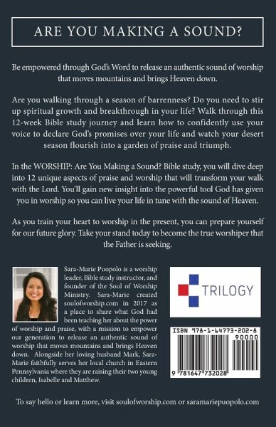 Be empowered through God's Word to release an authentic sound of worship that moves mountains and brings Heaven down. Are you walking through a season of barrenness? Do you need to stir up spiritual growth and breakthrough in your life? Walk through this 12-week Bible study journey and learn how to confidently use your voice to declare God's promises over your life and watch your desert season flourish into a garden of praise and triumph. In the WORSHIP: Are You Making a Sound? Bible study, you will dive deep into 12 unique aspects of praise and worship that will transform your walk with the Lord. You'll gain new insight into the powerful tool God has given you in worship so you can live your life in tune with the sound of Heaven. As you train your heart to worship in the present, you can prepare yourself for our future glory. Take your stand today to become the true worshiper that the Father is seeking.