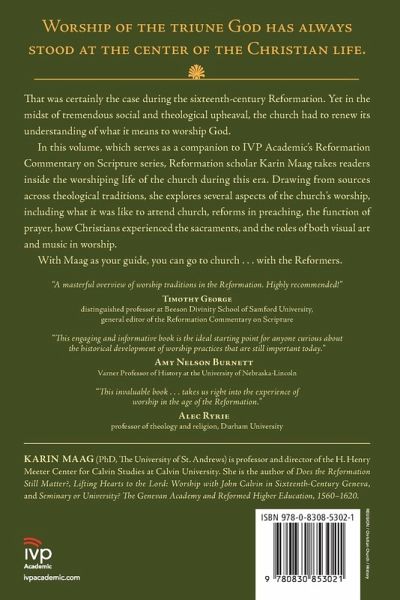 Worship of the triune God has always stood at the center of the Christian life. That was certainly the case during the sixteenth-century Reformation as well. Yet in the midst of tremendous social and theological upheaval, the church had to renew its understanding of what it means to worship God. In this volume, which serves as a companion to IVP Academic's Reformation Commentary on Scripture series, Reformation scholar Karin Maag takes readers inside the worshiping life of the church during this era. Drawing from sources across theological traditions, she explores several aspects of the church's worship, including what it was like to attend church, reforms in preaching, the function of prayer, how Christians experienced the sacraments, and the roles of both visual art and music in worship. With Maag as your guide, you can go to church-with the Reformers.