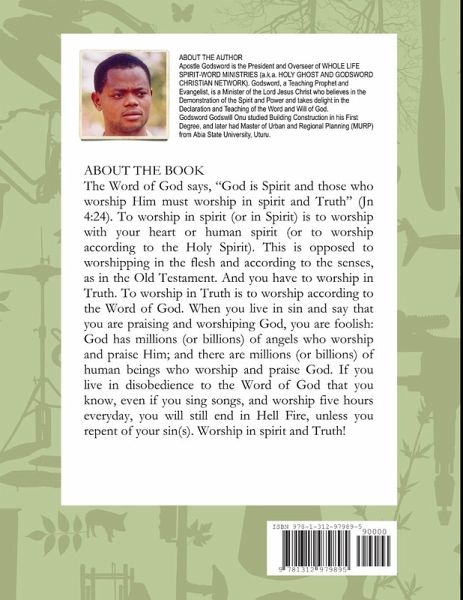 The Word of God says, "God is Spirit and those who worship Him must worship in spirit and Truth" (Jn 4:24). To worship in spirit (or in Spirit) is to worship with your heart or human spirit (or to worship according to the Holy Spirit). This is opposed to worshipping in the flesh and according to the senses, as in the Old Testament. And you have to worship in Truth. To worship in Truth is to worship according to the Word of God. When you live in sin and say that you are praising and worshiping God, you are foolish: God has millions (or billions) of angels who worship and praise Him; and there are millions (or billions) of human beings who worship and praise God. If you live in disobedience to the Word of God that you know, even if you sing songs, and worship five hours everyday, you will still end in Hell Fire, unless you repent of your sin(s). Worship in spirit and Truth!