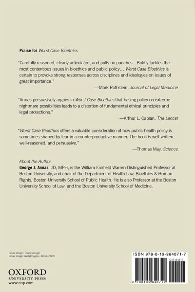 "Carefully reasoned, clearly articulated, and pulls no punches...Boldly tackles the most contentious issues in bioethics and public policy....Worst Case Bioethics is certain to provoke strong responses across disciplines and ideologies on issues of great importance."- Mark Rothstein, Journal of Legal Medicine "Annas persuasively argues in Worst Case Bioethics that basing policy on extreme nightmare possibilities leads to a distortion of fundamental ethical principles and legal protections." - Arthur L. Caplan, The Lancet "Worst Case Bioethics offers a valuable consideration of how public health policy is sometimes shaped by fear in a counterproductive manner. The book is well-written, well-reasoned, and persuasive." - Thomas May, Science