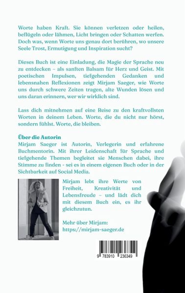 "Wortbalsam" ist eine Sammlung inspirierender Texte, die die Kraft der Sprache nutzen, um Trost, Erkenntnis und Selbstreflexion zu schenken. Es geht um Worte, die die Seele berühren, um innere Stärke und persönliche Entwicklung. Mit poetischen Gedanken, spirituellen Impulsen und tiefgehenden Reflexionen lädt das Buch dazu ein, sich selbst und das eigene Leben bewusster wahrzunehmen. Themen wie Selbstliebe, Vergebung, Verbundenheit und die schöpferische Kraft der Gedanken stehen im Mittelpunkt. "Wortbalsam" ist ein Begleiter für alle, die nach innerer Ruhe, Sinn und positiven Veränderungen suchen.