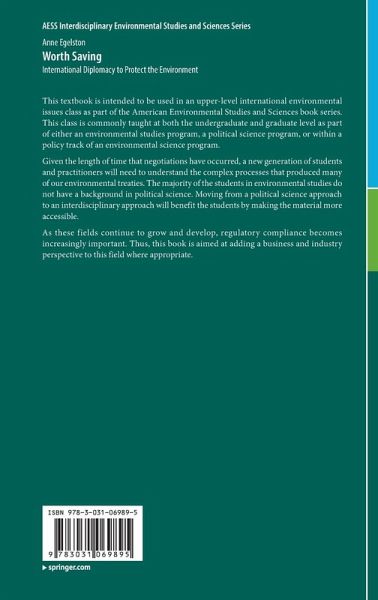 This textbook is intended to be used in an upper-level international environmental issues class as part of the American Environmental Studies and Sciences book series. This class is commonly taught at both the undergraduate and graduate level as part of either an environmental studies program, a political science program, or within a policy track of an environmental science program.