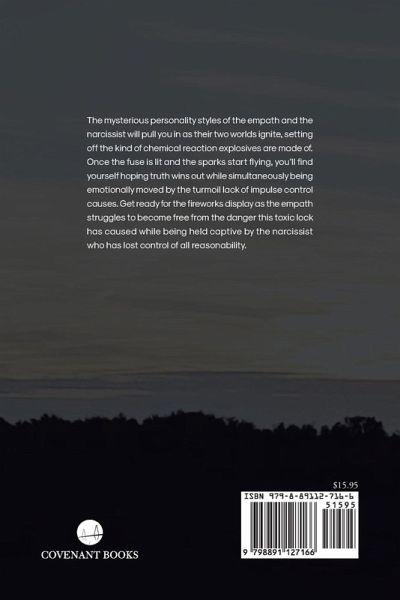 The mysterious personality styles of the empath and the narcissist will pull you in as their two worlds ignite, setting off the kind of chemical reaction explosives are made of. Once the fuse is lit and the sparks start flying, you'll find yourself hoping truth wins out while simultaneously being emotionally moved by the turmoil lack of impulse control causes. Get ready for the fireworks display as the empath struggles to become free from the danger this toxic lock has caused while being held captive by the narcissist who has lost control of all reasonability.