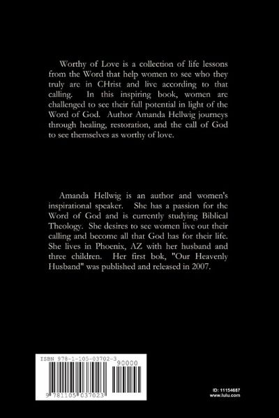 Worthy of Love is a collection of lessons from the Word that help women to see who they are in Christ. In this inspiring book, women are challenged to see their full potential in light of the Word of God. Author Amanda Hellwig journeys through healing, restoration, and the call of God to see themselves as worthy of love.