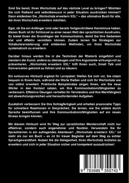 Sind Sie bereit, Ihren Wortschatz auf das nächste Level zu bringen? Wollen Sie sich fließend und selbstbewusst in jeder Situation ausdrücken können? Entdecken Sie "Wortschatz erweitern XXL" ¿ das ultimative Buch für alle, die ihren Wortschatz erweitern möchten. Egal, ob Sie ein Anfänger sind oder schon fortgeschrittene Kenntnisse haben, dieses Buch ist Ihr Schlüssel zu einer neuen Welt des sprachlichen Ausdrucks. Mit "Wortschatz erweitern XXL" erhalten Sie: ¿Grundlagen der Kommunikation: Lernen Sie, wie Sie Ihre Gedanken klar und effektiv vermitteln. ¿Strategien zur Vokabularerweiterung: Entdecken Sie Methoden, um Ihren Wortschatz systematisch zu erweitern. ¿Techniken der Rhetorik: Meistern Sie die Kunst, andere zu überzeugen und Ihre Argumente wirkungsvoll zu präsentieren. ¿Small Talk und Konversation: Lernen Sie, wie Sie Gespräche geschickt führen und steuern. ¿Exklusives Hörbuch: Stellen Sie sich vor, Sie sitzen bequem in Ihrem Auto, während die Worte fließen und sich Ihr Wortschatz wie von selbst erweitert. ¿Praktische Beispielsätze: Lernen Sie, wie man neue Wörter in Kontext setzt, um Ihre Kommunikationsfähigkeiten zu verbessern. ¿Effektive Übungen: Vertiefen Sie Ihr Verständnis und Ihre Merkfähigkeit mit abwechslungsreichen und herausfordernden Aufgaben. ¿Schlagfertigkeit: Verbessern Sie Ihre Reaktionsschnelligkeit in Gesprächen mit praxisnahen Tipps. ¿Überzeugende Kommunikation: Vertiefen Sie Ihr Verständnis, wie Sie andere durch Sprache beeinflussen können. Sie haben Anspruch auf einen exklusiven Bonus: das Hörbuch "Wortschatz erweitern XXL". Mit diesem Hörbuch wird Ihr Weg zur sprachlichen Meisterschaft nicht nur effektiver, sondern auch angenehmer und flexibler. Nutzen Sie die Gelegenheit, Ihren Wortschatz mühelos zu erweitern! Verwandeln Sie Ihr Sprachlernen in ein aufregendes Abenteuer! "Wortschatz erweitern XXL" ist mehr als nur ein Buch ¿ es ist Ihr treuer Begleiter auf dem Weg zu echter Sprachgewandtheit. Schlagen Sie heute ein neues Kapitel in Ihrem Sprachlernprozess auf. Klicken Sie auf "Jetzt kaufen", um Ihre Reise zu beginnen!