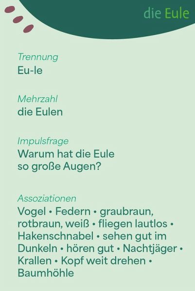Alltagswörter spielerisch entdecken!Waldweg, Eule, Fliegenpilz - mit diesen liebevoll illustrierten Wortschatzkärtchen lernen die Kinder alltägliche Lebensmittel spielerisch kennen. Die Rückseiten bieten praktische Informationen wie Mehrzahlformen, Silbentrennung und passende Wort-Assoziationen. Zusätzlich sorgt eine Impulsfrage auf jeder Karte für Gesprächsanreize und fördert die Sprachentwicklung. Das kompakte Kartenset passt in jede Tasche und ist sofort einsatzbereit!- 32 kompakte Karten für junge Entdecker:innen- Spielerisch den Wortschatz erweitern und die Sprachentwicklung fördern- DaF- und DaZ-geeignet für den Einsatz in der SprachförderungPerfekt für spontane Sprachspiele - überall und jederzeit!