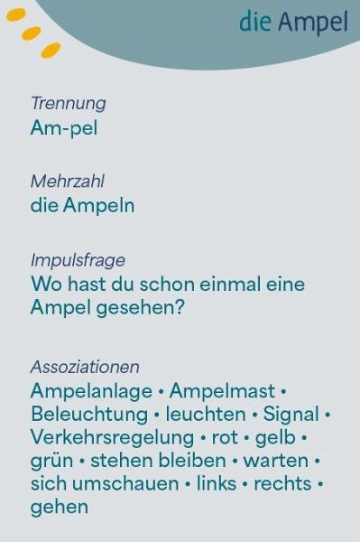 Ampel, Radweg, Feuerwehr - das kenne ich schon! Mit diesen liebevoll illustrierten Karten entdecken die Kinder Begriffe aus ihrem Alltag. Die Rückseiten geben dir hilfreiche Infos, wie Mehrzahl, Silbentrennung oder Wort-Assoziationen, und eine Impulsfrage ist auch immer mit dabei. Das kleine Kartenset passt in jede (Hosen-)Tasche und ist sofort einsatzbereit. ¿ 32 handliche Karten ¿ spielerisch den Wortschatz erweitern ¿ DaF/DaZ-geeignet