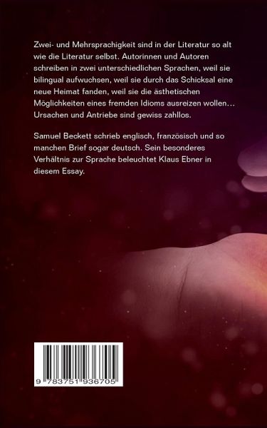 Samuel Beckett schrieb in zwei Sprachen, in seiner Muttersprache Englisch sowie auf Französisch. Zu unterschiedlichen Zeiten lag die Betonung einmal auf der einen und einmal auf der anderen Seite. Zudem übersetzte Beckett viele seiner Bücher selbst in die jeweils andere Sprache. Der österreichische Autor Klaus Ebner, der ebenfalls zweisprachig schreibt, untersucht in seinem Essay Becketts Verhältnis zur Sprache und zeigt interessante Details und Hintergründe zum bilingualen Schaffensprozess.
