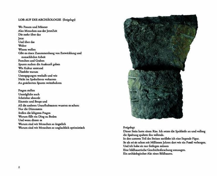 "Ein Bildhauer im wahrsten Sinne des Wortes schreibt über einige seiner Skulpturen und bekennt: Dichten ist Wüten und Walten im Steinbruch der Sprache. Fotografien dieser Skulpturen stehen eigenmächtig und doch sensibel neben den lyrischen Texten. Sie machen neugierig, Welges Skulpturen gegenüberzutreten." Friedhelm Welge