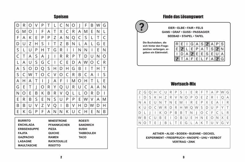 - Über 100 abwechslungsreiche Wortsuchrätsel