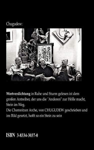 Drei Chemnitzer Autoren unterschiedlichen Alters und ungleicher Biographien fanden sich zusammen, um erstmals eine Auswahl ihrer Texte in einem eigenen Band zu veröffentlichen. Es entstand eine Sammlung von Gedichten und Kurzgeschichten, von denen nur wenige eigens für das vorliegende Buch geschrieben wurden. Die Autoren vereinbarten, am Wort des anderen nichts zu kritisieren, zu verändern und zu streichen. Das Experiment einer Wortverdichtung authentischer Charaktertexte. Die Idee köchelte schon geraume Zeit wie erkaltende Lava unter einer elastischen Kruste. Sie brodelte ab und zu durch die rissige Haut des Zweifels und verlor dabei immer mehr an Kraft. Bis der Dritte kam. Mit ebenfalls unveröffentlichten, ja ungezeigten Zeilen und einer Fotografin, deren Aufnahmen die Texte illustrierten und miteinander verknüpften. Unterschiedlich sind die Themen, verschiedenartig die Stile, mitunter polarisierend die Sichten der Autoren auf das, was das Leben genannt wird. Doch hinter allen Texten steht die Überzeugung, dass nicht immer der gebilligte und schon gar nicht der billige Blick unter die Oberfläche der Dinge dringt. Die Zeilen entstanden aus unterschiedlichen persönlichen Motiven ihrer Verfasser, die der Leser gern fühlen darf. Mit der Wortverdichtung von CHUGUDEW (Conny Haufe, Uwe-Jens Görke, Ulf Drechsel, Edgar Walz) liegt eine Textauswahl zum Anregen, vielleicht auch eine Auswahl zum Aufregen vor. Nach Meinung der Autoren aber eine Sammlung, die wohl schnell gelesen werden kann, jedoch nicht nebenbei.