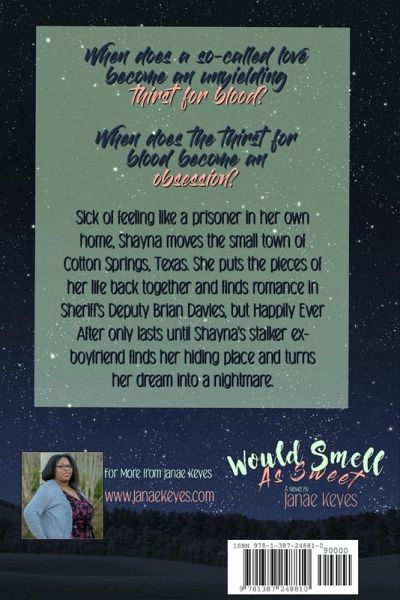 When does a so-called love become an unyielding thirst for blood? When does the thirst for blood become an obsession? Sick of feeling like a prisoner in her own home, Shayna moves the small town of Cotton Springs, Texas. She puts the pieces of her life back together and finds romance in Sheriff's Deputy Brian Davies, but Happily Ever After only lasts until Shayna's stalker ex-boyfriend finds her hiding place and turns her dream into a nightmare.