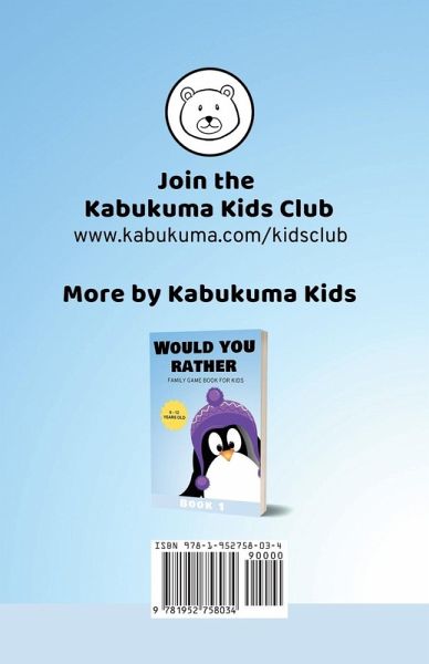 Would you rather play the guitar or the ukulele? Kids love to play Would You Rather, the game of thought-provoking questions and endless laughs. This book provides tons of silly, fun for the whole family! Packed with creative and hilarious "Would You Rather" questions written by a teen for kids. This game book is perfect for: birthday gifts, parties, rainy days, travel games, family game night, unplugging from the internet, developing good listening skills, expressing your ideas, memorable conversations with your kids, clean fun for the whole family, all ages (6 year old, 7 year old, 8 year old, 9 year old, 10 year old, 11 year old, 12 year old kids) Would You Rather is a noncompetitive game that helps young kids get to know each other and have a great time! Newsflash: Would You Rather Family Game Book for Kids 6-12 Years Old Book 1 is out now!
