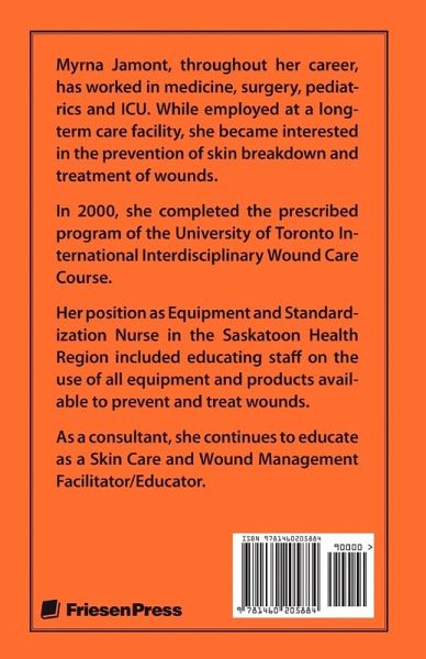 Myrna Jamont, throughout her career, has worked in medicine, surgery, pediatrics and ICU. While employed at a long-term care facility, she became interested in the prevention of skin breakdown and treatment of wounds. In 2000, she completed the prescribed program of the University of Toronto International Interdisciplinary Wound Care Course. Her position as Equipment and Standardization Nurse in the Saskatoon Health Region included educating staff on the use of all equipment and products available to prevent and treat wounds. As a consultant, she continues to educate as a Skin Care and Wound Management Facilitator/Educator.