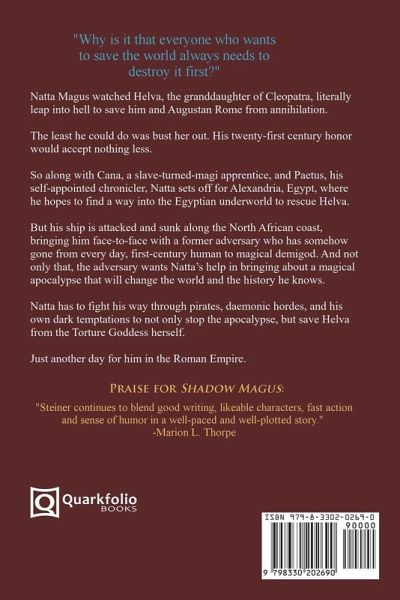"Why is it that everyone who wants to save the world always needs to destroy it first?" Natta Magus watched the granddaughter of Cleopatra literally leap into hell to save him and Augustan Rome from annihilation. The least he could do was bust her out. So along with a slave-turned-magi apprentice and his self-appointed chronicler, Natta sets off for Alexandria, Egypt, where he hopes to find a way into the Egyptian underworld. But he soon comes face-to-face with a former adversary who has somehow gone from everyday, first-century human to magical demigod. And not only that, the adversary wants…mehr