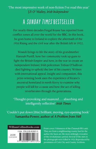 'Couldn't put down the brilliant, moving, eye-opening book Wounds by Fergal Keane. You don't need interest in Irish history to be swept away by characters who leap off page, facing impossible choices in the struggle for dignity and independence' Samantha Power, author of A Problem from Hell