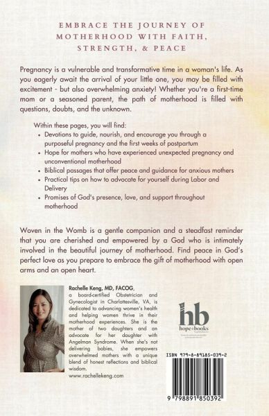 Pregnancy is a vulnerable and transformative time in a woman's life. As you eagerly await the arrival of your little one, you may be filled with excitement - but also overwhelming anxiety! Whether you're a first-time mom or a seasoned parent, the path of motherhood is filled with questions, doubts, and the unknown. ¿¿ Within these pages, you will find:Devotions to guide, nourish, and encourage you through a purposeful pregnancy and the first weeks of postpartum Hope for mothers who have experienced unexpected pregnancy and unconventional motherhood Biblical passages that offer peace and guidance for anxious mothers Practical tips on how to advocate for yourself during Labor and Delivery Promises of God's presence, love, and support throughout motherhood Woven in the Womb is a gentle companion and a steadfast reminder that you are cherished and empowered by a God who is intimately involved in the beautiful journey of motherhood. Find peace in God's perfect love as you prepare to embrace the gift of motherhood with open arms and an open heart.