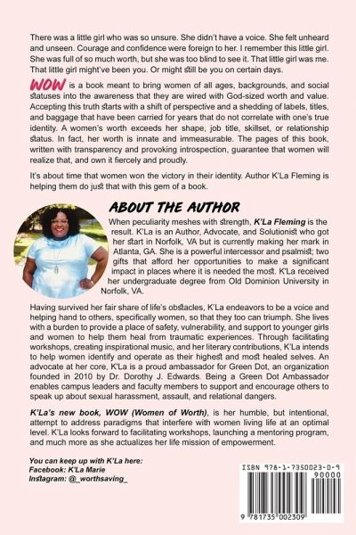 Have you ever wrestled with low self-esteem, doubt, or fear? Do you desire to be a woman who thrives in her purpose without the opinions of others? Have you experienced a traumatic event that you have taken on as your identity? The purpose of this book is to shift the minds and heart perspectives of women who have carried labels, titles, and baggage that does not identify with their identity. I remember that little girl, who could not find her voice. She did not have one ounce of courage or confidence to be what most people described as the real "you". It is my goal to inspire women to see themselves the way they were created. The way we were created is more than just our shapes, current job titles, but that expression of "WOW", a beautiful masterpiece. WOW will help women see their value and respond in every area of their lives as victors.