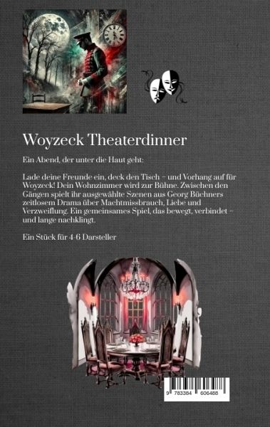 Schwelgst du noch in Erinnerungen an deine Theater-AG - oder gab es an deiner Schule etwa gar keine? Würdest wahnsinnig gerne einmal als Faust, Gretchen, Hamlet, Wendla oder Woyzeck auf der Bühne stehen? Möchtest du deinen Freunden einmal etwas ganz Besonderes bieten, einen Abend, an dem ihr euch in völlig neuen Rollen erlebt?Dann sind Theater-Dinner-Skripte genau das Richtige. Schlüpft in die Figuren großer Klassiker und inszeniert die Dramen der Weltliteratur in deinem Wohnzimmer.Das Theaterdinner-Skript enthält alles, was du brauchst: Eine (stark gekürzte) Auswahl von Schlüsselszenen der Klassiker, ein Gastgeberskript mit Tipps für die Vorbereitung und eine Einführung für deine Gäste mit einer kleinen Einstimmung auf das Stück und auf die Rolle.