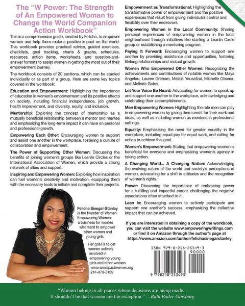 In "WPower: The Strength of An Empowered Woman to Change the World Companion Action Workbook," Felicha invites you to explore the remarkable journey of women's empowerment and discover the profound rewards that come from empowering others, along with the art of guiding fellow women to do the same. This comprehensive guide has been meticulously crafted to equip women with the strength to effect positive change on a global scale. Inside, you'll find a wealth of practical insights, guided exercises, checklists, goal-setting tools, informative charts and graphs, well-structured schedules, invaluable resources, actionable items, thought-provoking worksheets, and a platform for meaningful questions and answers. Each activity is strategically designed to push you beyond your comfort zone, igniting the spark of action within you. Every page unfolds a unique facet of women's empowerment, offering a transformative experience that goes far beyond the realms of conventional self-help workbooks. Prepare to embark on a powerful, personal, and life-altering journey with this exceptional action workbook, where empowerment becomes a force for change.