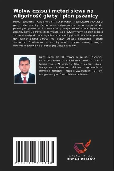 Metoda zak¿adania i czas siewu maj¿ du¿y wp¿yw na zachowanie wilgotnöci gleby i plon pszenicy. Uprawa konserwuj¿ca pomaga we wczesnym siewie pszenicy w uprawie ry¿u i pszenicy oraz pomaga unikn¿¿ stresu cieplnego w pszenicy ozimej. Uprawa konserwuj¿ca ma pozytywny wp¿yw na plon poprzez zachowanie wilgoci i zapobieganie suszy pszenicy przed i po antezie, podczas gdy konwencjonalna uprawa ma wy¿szy procent kie¿kowania i dobre stanowisko. ¿ció¿kowanie w pszenicy ozimej odgrywa znacz¿c¿ rol¿ w ochronie wilgoci w glebie i obni¿a populacj¿ chwastów.
