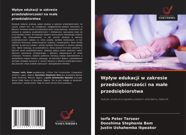 Niniejsze badanie analizuje wp¿yw edukacji w zakresie przedsi¿biorczo¿ci na sukces mäych firm, ze szczególnym uwzgl¿dnieniem piekarni Solomatrix w Makurdi. Poniewä krajobraz przedsi¿biorczo¿ci wci¿¿ ewoluuje, zrozumienie roli edukacji w rozwijaniu przedsi¿biorczo¿ci i efektywno¿ci operacyjnej staje si¿ coraz bardziej istotne. W niniejszym badaniu zastosowano metodologi¿ studium przypadku, aby przeanalizowä, w jaki sposób edukacja w zakresie przedsi¿biorczo¿ci wp¿ywa na ró¿ne aspekty wyników biznesowych, w tym stabilno¿¿ finansow¿, konkurencyjno¿¿ rynkow¿ i innowacyjno¿¿. Dane zostäy zebrane za pomoc¿ ankiety i analizy wyników finansowych w okresie jednego roku. Wyniki wskazuj¿, ¿e przedsi¿biorcy, którzy przeszli formalne szkolenie w zakresie zasad przedsi¿biorczo¿ci, wykazuj¿ wy¿szy poziom pewno¿ci siebie, zdolno¿ci planowania strategicznego i zdolno¿ci adaptacyjnych do zmian rynkowych. Ponownie, badanie podkre¿la korelacj¿ mi¿dzy wyksztäceniem a wskänikami rozwoju biznesu, pokazuj¿c, ¿e Solomatrix Bakery z powodzeniem wdro¿y¿a strategie wyuczone w ramach edukacji w zakresie przedsi¿biorczo¿ci, aby poprawi¿ swoje praktyki operacyjne i zaangäowanie klientów.
