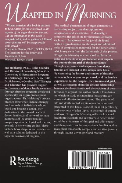 Based on 15 years of experience working with organ procurement organizations and donor families, Wrapped in Mourning addresses the heretofore unexplored subject of organ donor family trauma. This book covers the issues surrounding organ donation, including the history of organ transplantation, how organs are procured for transplantation, as well as the medical procedure itself. Each issue is explored with regards to its impact upon donor families. Ways to reduce grief, prevent problems, and increase the benefits of donating organs for the donating family are also discussed.