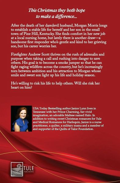 This Christmas they both hope to make a difference... After the death of her daredevil husband, Morgan Morris longs to establish a stable life for herself and her son in the small town of Pine Hill, Kentucky. She finds comfort in her new job at a local nursing home, but lately there is another draw-a handsome first responder who's gentle and kind to her grieving son, but his career worries her. Firefighter Andrew Scott thrives on the rush of adrenalin and purpose when taking a call and rushing into danger to save others. His goal is to become a smoke jumper so that he can fight raging wildfires across the country, but he's increasingly torn between ambition and his attraction to Morgan whose smile and sweet son light up his life and holiday season. He's willing to risk his life to help others. Will she risk her heart on him?
