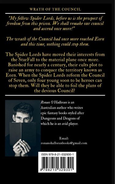 "My fellow Spider Lords, before us is the prospect of freedom from this prison. We shall remake our council and ascend once more!" The wrath of the Council had reached Eorn once more and this time, nothing could stop them. The Spider Lords have moved their interests from the StarFall to the material plane once more. Banished for nearly half a century, their cults plot to raise an army to conquer the fiefdom known as Eorn. When the Spider Lords reform the council of seven, only four young soon to be heroes can stop them. Will they be able to foil the plans of the devious council? Or will they fail and have the whole of Eorn plunged into darkness eternal?