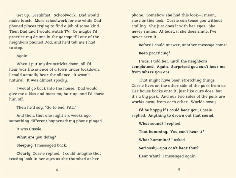 Cassie Cotton has always been unusual, a bit different--but this only makes her more intriguing to her school friend Fitz. Cassie can hear a noise that no one else can, and she believes it's a sound that shows the Earth is in distress, damaged by human activity that is causing climate change. When this belief leads to her being ridiculed and bullied at school, Cassie disappears. Fitz is determined to find her, but he has no idea where to start looking, or if he'll be in time to help her . . .