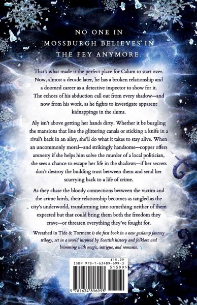 Aly knows better than to trust a copper. But he might be her only chance at freedom. Enforcer to the city's most vicious crime laird, Aly expects a long prison sentence when she's arrested for murder. But instead, the inspector offers her immunity in exchange for her help finding the killer. It's a chance to escape her boss's cruelty and start fresh-as long as the detective never learns she's more than a petty thief. Haunted by a childhood in Faerie, Calum can't ignore reports of missing people. Even when it risks his career. After fleeing his fey captor, Calum rebuilt his life in the mortal world, finding purpose in his work as a detective inspector. But when he disobeys orders to overlook a spate of disappearances from the slums, that job is endangered. Solving the murder of a local politician is his last chance, and he'll use all the resources at his disposal-even trusting a criminal he suspects knows more than she admits. As they chase the bloody connections linking the victim to the crime lairds and even the fey, Calum's feelings for Aly grow, forcing him to question the career he's fighting to save. And soon, Aly finds herself gambling not just her freedom, but her heart. Wreathed in Tide & Torment is the first book in The Eskalian Fey, a new gaslamp fantasy trilogy set in a world inspired by Scottish history and folklore and brimming with magic, intrigue, and romance.