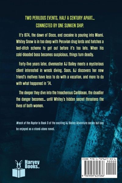 Two perilous events, half a century apart... connected by one sunken ship. It's 1974, the dawn of Disco, and cocaine is pouring into Miami. Whitey Snow is in too deep with Peruvian drug lords and hatches a last-ditch scheme to get out before it's too late. When his cold-blooded boss becomes suspicious, things turn deadly. Forty-five years later, divemaster AJ Bailey meets a mysterious client interested in wreck diving. Soon, AJ discovers her new friend's motives have less to do with a vacation, and more to do with what happened in '74. The deeper they dive into the treacherous Caribbean, the deadlier the danger becomes... until Whitey's hidden secret threatens the lives of both women. Wreck of the Raptor is Book 3 of the exciting AJ Bailey Adventure series but can be enjoyed as a stand-alone novel.