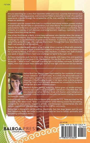 Are you searching for a story that resonates within your soul, a journey that mirrors your own quest for meaning, purpose, and connection? Wren is more than a novel-it's a spiritual experience, a guide through the complexities of life, love, and the divine mysteries that shape our existence. A common sparrow named Wren lives in a mythical land where animals possess wisdom and spirituality. Her life takes an extraordinary turn when Alnore, the revered spiritual guide and protector of the land, chooses her to be his successor. Under Alnore's mentorship, Wren embarks on a journey of self-discovery and enlightenment, meeting a captivating cast of unique characters along the way. One of her first friends is Betts, a kind-hearted beaver who teaches Wren the values of family and community. She also encounters Reinna, a wise macaw whose profound insights challenge her to see beyond the physical world. However, it is Fannie, a nearsighted and delightfully quirky flamingo, who captures Wren's heart. Through their love, Wren learns the depth and power of true connection. Despite the guidance and support of her friends, Wren's journey is filled with obstacles. Alnore's ancient nemesis, Styxn, a malevolent creature of chaos, seeks to thwart Wren's rise. He is joined by Mouse, a rat with a cunning mind, and Bubo, a ruthless owl, both of whom sow seeds of doubt in Wren's heart and challenge her belief in the Light of All. As these adversaries push her to her limits, Wren grapples with insecurities and questions about her identity and purpose in life. The Question, the one that has forever troubled and driven her -"What is true?"-becomes a guiding light in her darkest moments. To fulfill her destiny, Wren must conquer these challenges, trust her inner light, and discover her true identity.