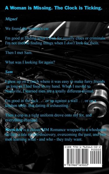 A woman is missing. The clock is ticking. There's no time to lose when a life hangs in the balance. Miguel We found her car. I'm good at finding things, mostly clues and criminals. I'm not used to finding things when I don't look for them. Then I met Sam. What was I looking for again? Sam I grew up on a ranch. It was easy to win over furry friends as long as I had food in my hand. When I moved to Nashville, I leaned men are a totally different animal. I'm good in the sack . . . or up against a wall . . . or on the kitchen table, But dating is exhausting. When a cop in a tight uniform drove onto my lot, everything changed. Wrenched is a classic MM Romance wrapped in a whodunit thriller, a tale of self-discovery, overcoming the past, and two men learning what-and who-they truly want. This story includes scenes where one character grapples with PTSD, while another discovers how best to support him.