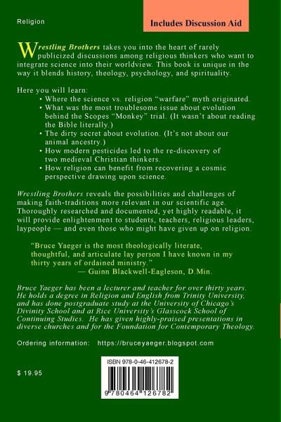 Wrestling Brothers takes you into the heart of rarely publicized discussions among religious thinkers who want to integrate science into their worldview. This book is unique in the way it blends history, theology, psychology, and spirituality. Here you will learn: ¿ Where the science vs. religion "warfare" myth originated. ¿ What was the most troublesome issue about evolution behind the Scopes "Monkey" trial. (It wasn't about reading the Bible literally.) ¿ The dirty secret about evolution. (It's not about our animal ancestry.) ¿ How modern pesticides led to the re-discovery of two medieval Christian thinkers. ¿ How religion can benefit from recovering a cosmic perspective drawing upon science. Wrestling Brothers reveals the possibilities and challenges of making faith-traditions more relevant in our scientific age. Thoroughly researched and documented, yet highly readable, it will provide enlightenment to students, teachers, religious leaders, laypeople - and even those who might have given up on religion. The 2019 Expanded Edition even includes a 12-page Discussion Aid.