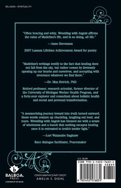 Advance Praise for Wrestling with Angels: "Often bracing and witty, Wrestling with Angels affirms the value of Madeline's life, and in so doing, all life." -Anne Stevenson 2007 Lannan Lifetime Achievement Award for poetry "Madeline's writings testify to the fact that healing does not fall from the sky, but rather comes by tirelessly opening up our hearts and ourselves, and accepting with reverence whatever we find there." -Dr. Max Heirich, PhD Retired professor, research scientist, former director of the University of Michigan Worker Health Program, and a forty-year explorer and consultant about holistic health and social and personal transformation. "A mesmerizing journey inward into truth turned outward, these words conjure up chuckling, laughing out loud, and tears. Wrestling with Angels has blessed me with a sense of wholeness and a hunch that nothing escapes healing once it is entrusted to truth's tender light." -Lori Watanabe Saginaw Race dialogue facilitator, Peacemaker
