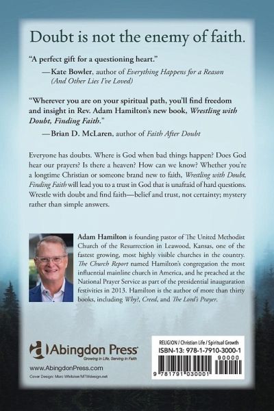 Does your faith make room for questions? Everyone has doubts. Where is God when bad things happen? Does God hear our prayers? Is there a heaven? How can we know? Often, we treat such questions as the enemy of faith. But uncertainty doesn't mean our belief is lacking. Doubt can be a path to a deeper, richer encounter with God. In Wrestling with Doubt, Finding Faith, join best-selling author and pastor Adam Hamilton as he discusses some of our most significant sources of doubt and shows how a steady trust in God can emerge from them. You will delve into questions like: "Does God exist? How can I know?" "Is the Bible true?" "Why do prayers go unanswered?" Hamilton approaches these sources of doubt with honesty and insight, drawing on the rich wisdom of the Bible, Christian tradition, and his experience walking with thousands of people on their spiritual journeys. Whether you're a longtime Christian or someone brand new to faith, this book will lead you to a trust in God that gives you the courage to ask tough questions. Though you may wrestle with doubt, you'll discover a faith that--rather than providing simple answers--includes belief and trust as well as uncertainty and mystery. The book can be used anytime throughout the year and can be read alone, used by small groups, or as an outreach gift for visitors. Components include a comprehensive Leader Guide, a six-session DVD featuring Adam Hamilton (with closed captioning), and a digital worship and sermon series, making this perfect as a group study and churchwide program done throughout the year.
