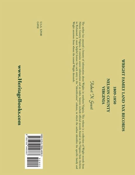 The author has amassed a bounty of information about Wrights in southern Virginia. This volume is a collection of Wright records from Nelson County, Virginia. It contains source information and an index. Sources include official records found in the Virginia State Archives in Richmond. A most helpful feature for each entry is the "identification" column, in which the author identifies the specific family and Wright ancestors from whom the named Wright descends.